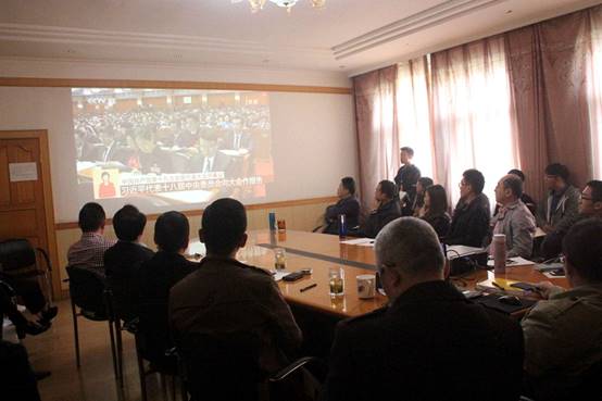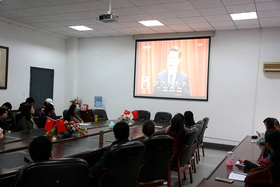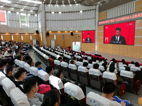 在整个收看过程中,师生们聚精会神,认真聆听了习近平总书记代表十八届中央委员会向大会所作的工作报告,不少师生仔细做着笔记,现场不时响起热烈的掌声。